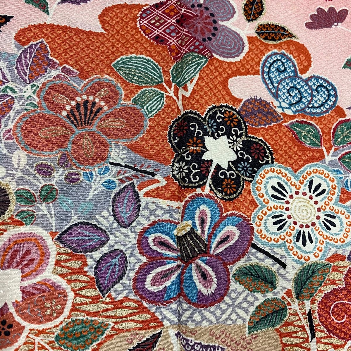 訪問着 身丈155.5 cm 裄丈65 M 袷 草花 霞 金彩 ぼかし ピンク 正絹 秀品