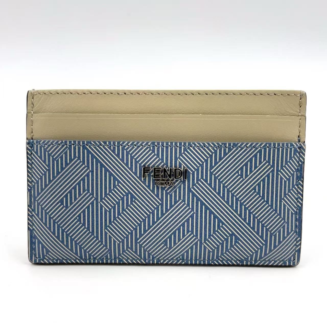 FENDI シャドー レザー ブルーグレー×ベージュ カードケース