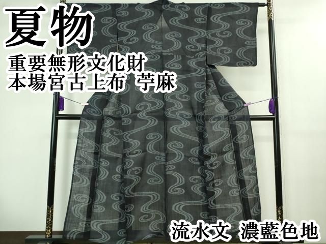 上 夏物 重要無形文化財 本場宮古上布 苧麻 流水文 濃藍色地 kh 5