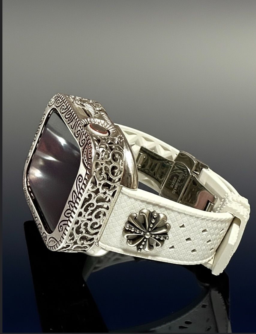 AppleWatch用 フッ素ラバー バンド コンチョ アラベスクカバー ケース