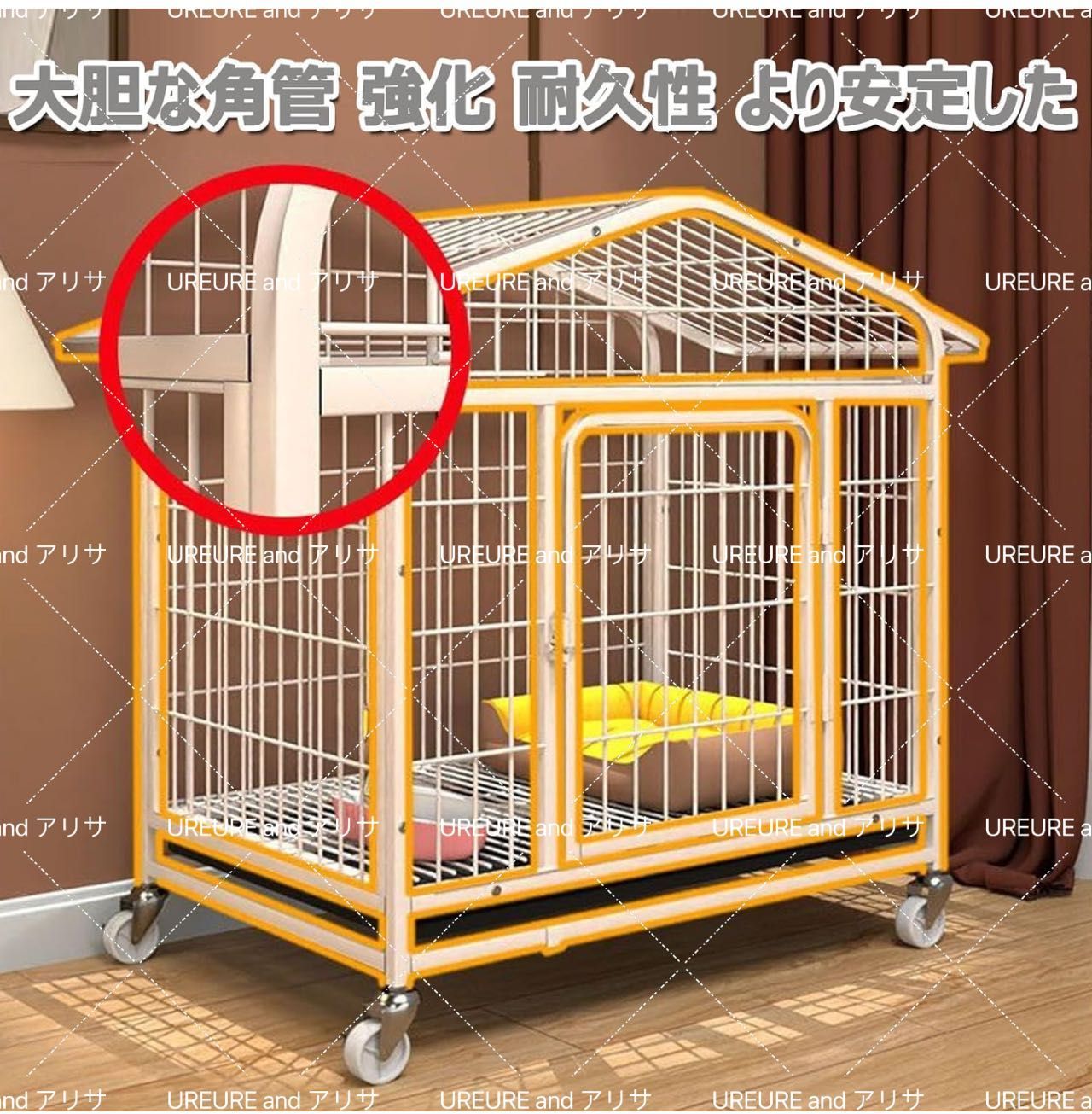 【ロック可能な車輪】当社の犬用ケージ 4 つのキャスター (2 つはロック可能)、ある部屋から別の部屋に簡単に移動できます。 ロック付きの 2 つの車輪が偶発的な動きを防ぎ、犬のクレートを所定の位置にしっかりと保持します。 あなたの毎日の生活に安全で便利にご利用いただける犬舎です。 犬小屋の犬のケージ 犬のケージ