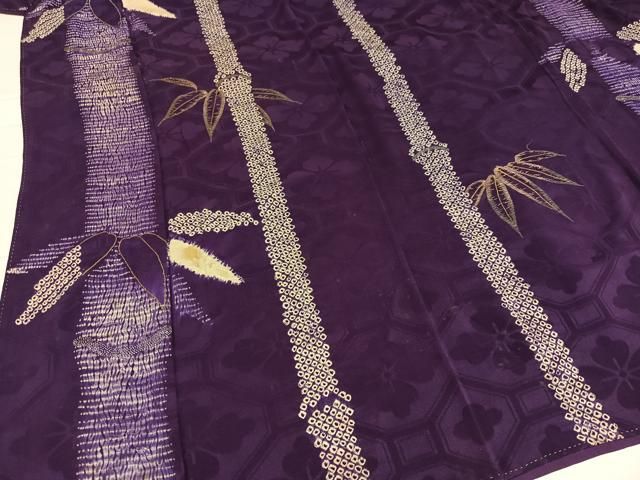 平和屋着物 アンティーク 大正ロマン 小紋 絞り 刺繍 笹竹文 金糸 正絹 ph