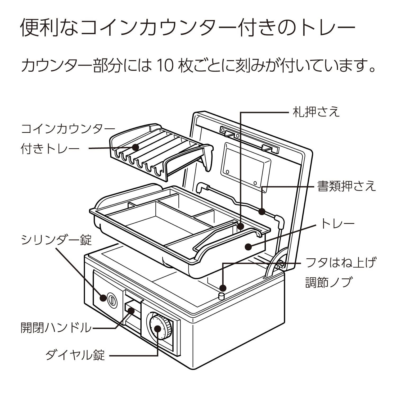 ●大変便利なコインカウンター付きのトレーを採用した手提げ金庫です。