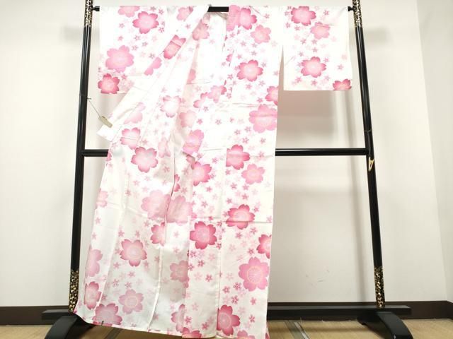 平和屋着物∴夏物 浴衣 綿紅梅 舞桜 綿 ng