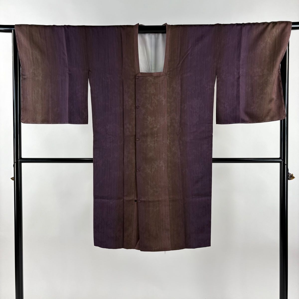 道行 身丈109 cm 裄丈68 L 和装コート 角衿 縞 地紋 茶紫 正絹 名品