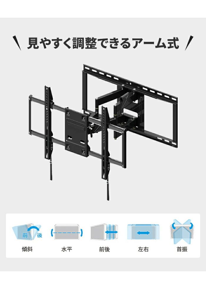 壁掛けテレビ金具 ディスプレイ 大型 テレビ 42~86 V 壁掛け TV 金具 アーム式 ネジ固定 角度調整 ストッパー付属 安定