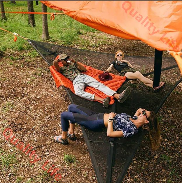 ? 【セットアップが簡単】ハンモックは3つのアンカーポイントの間で地面から吊り下げられているため、平らな地面を見つける必要はありません。地面の上に保持されると、湿った、不均一な、または棒/石で覆われた地面から離れます。