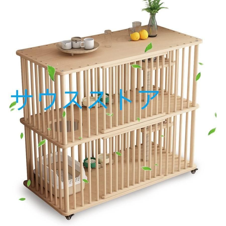 猫 ケージ ゲージ キャットケージ 2段 木製 大型 スリム キャスター 走防止 多頭飼い 組立簡単