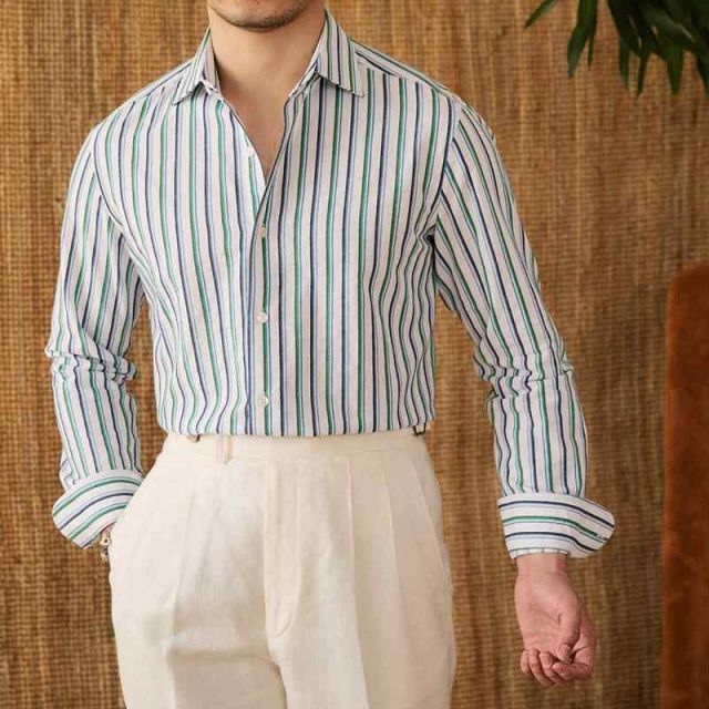 メンズ ファッション 服 男性用 オシャレ シンプル 大人 かっこいい 大きいサイズ ストリート 紳士服 フレッシュ 綿 長袖 シャツ カジュアル 通気性 ストライプ レトロ
