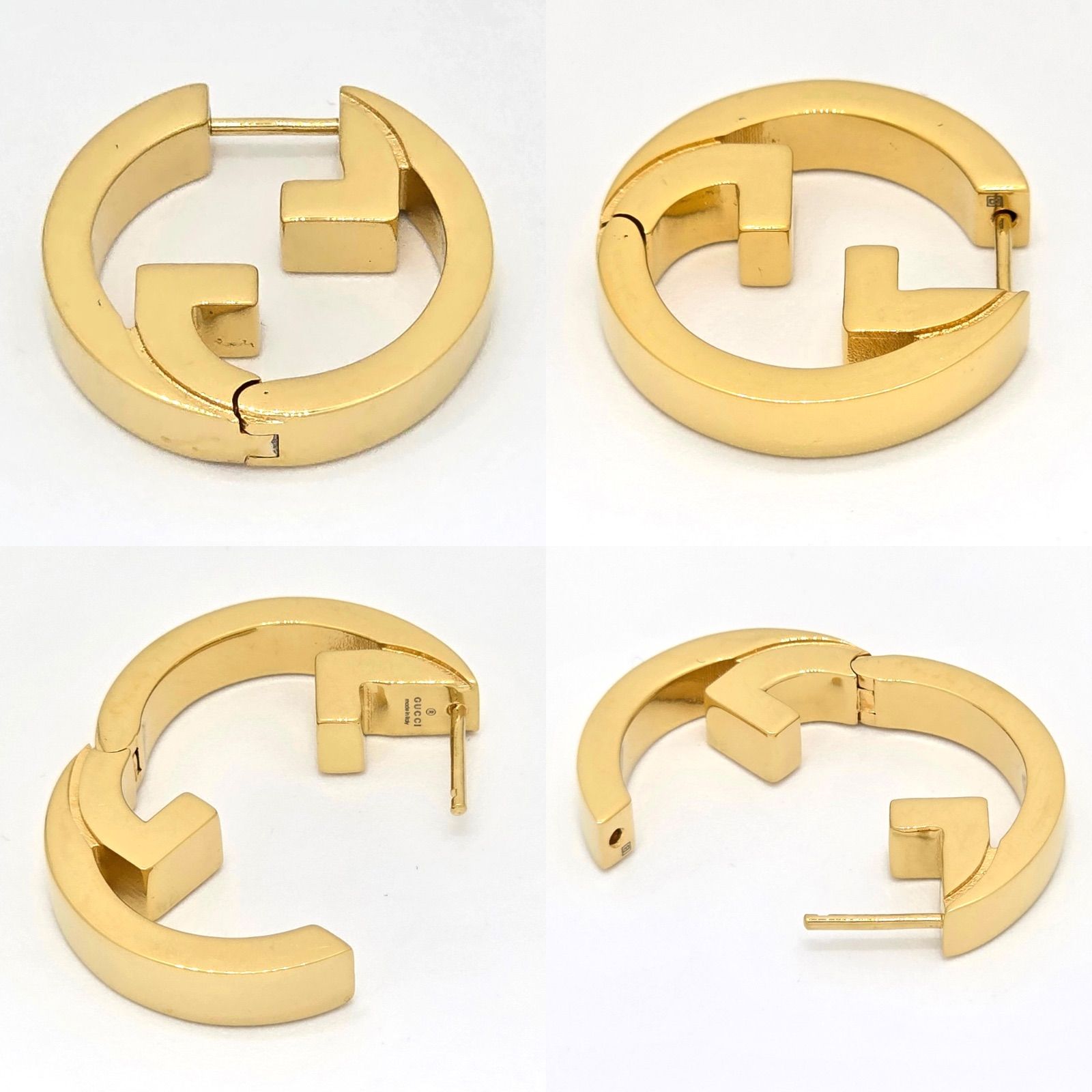 GUCCI グッチ 774534 ブロンディ フープ ピアス 両耳 ゴールドトーン フィニッシュ メタル ラウンド インターロッキングG 箱 保存袋 冊子 イタリア製 男女兼用