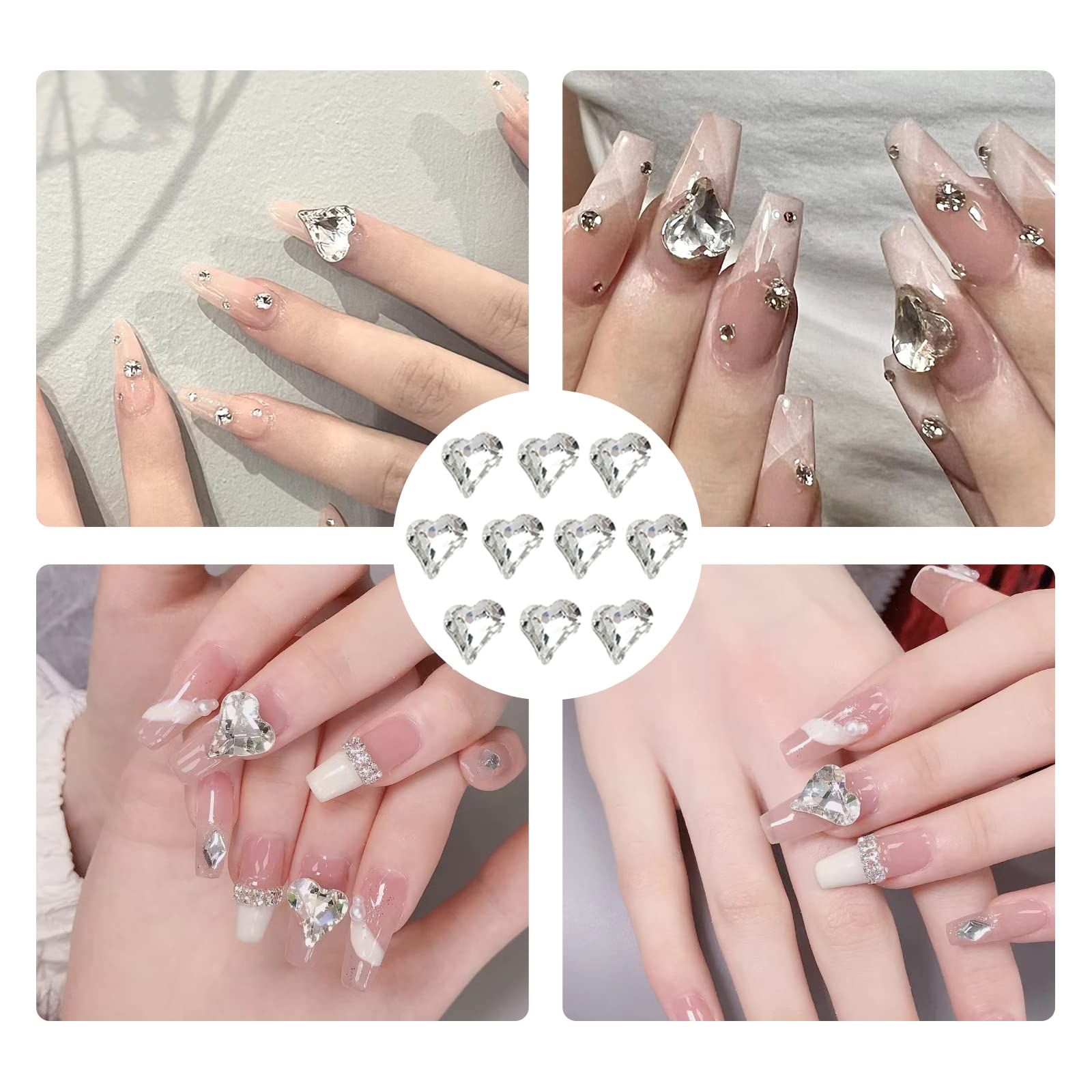nalaina ネイル ガラスストーン ネイルクリスタル (10個セット) ジェムラインストーンネイル キュートハート型 大きめ ネイルストーン DIY ネイルを飾てと服装使用 透明 (透明)