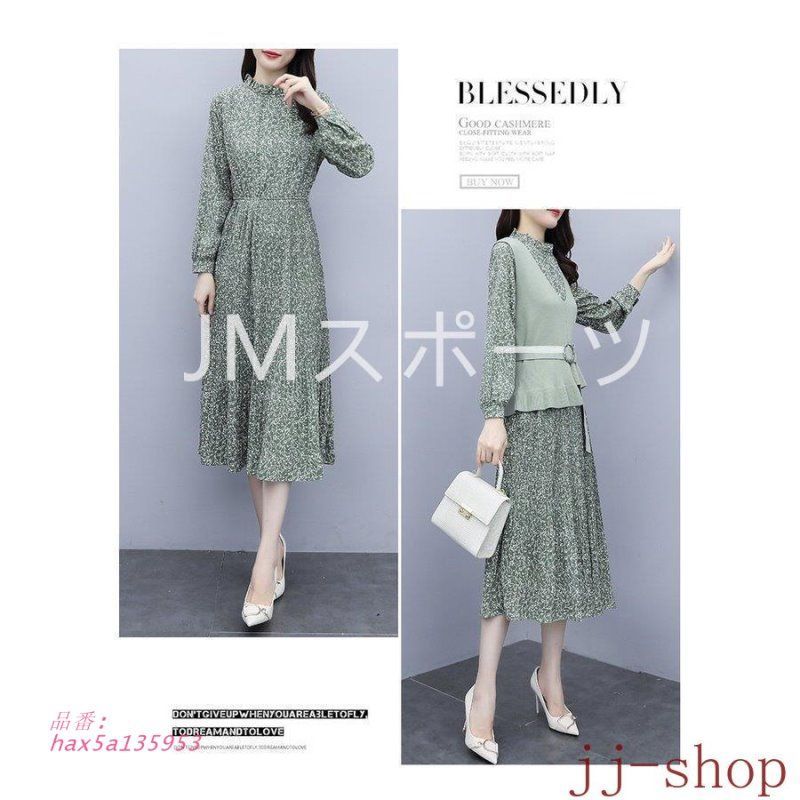連携キーワード:ワンピース2点セット レディース 40代 キレイめ マキシワンピース 秋冬 長袖ワンピース花柄スカート ニットベストセットアップ オシャレ 着痩せ 大人 上品