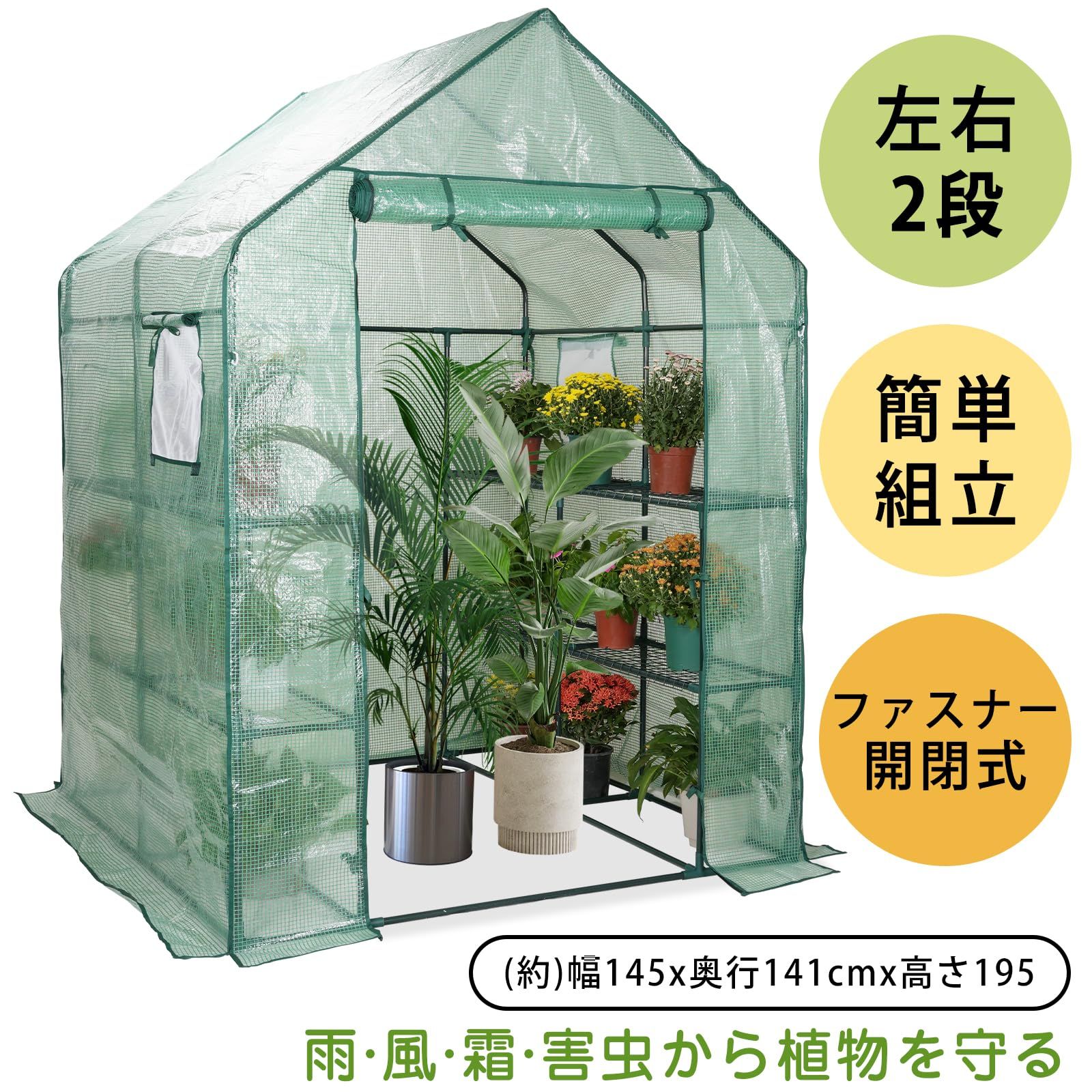 ビニールハウス 家庭用 ビニール温室 防風 防雨 防虫 花 野菜 植物 大容量 夏秋の長雨も安心 通気性良好 安全性高 耐久性 透明PVCカバー 組立簡単 大型 園芸用 143 195 cm