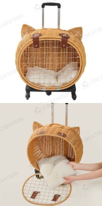 完全に手編みのケージに、ホイール付きのカートを組み合わせることで、外出がより楽になり、ペットを背負って外出する必要がなくなり、背中のストレスが軽減されます