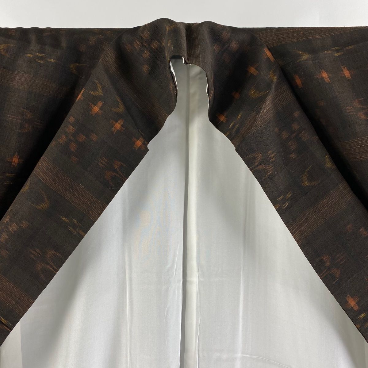 紬 身丈166 cm 裄丈66 M 袷 久米島紬 燕 段縞 焦茶色 正絹