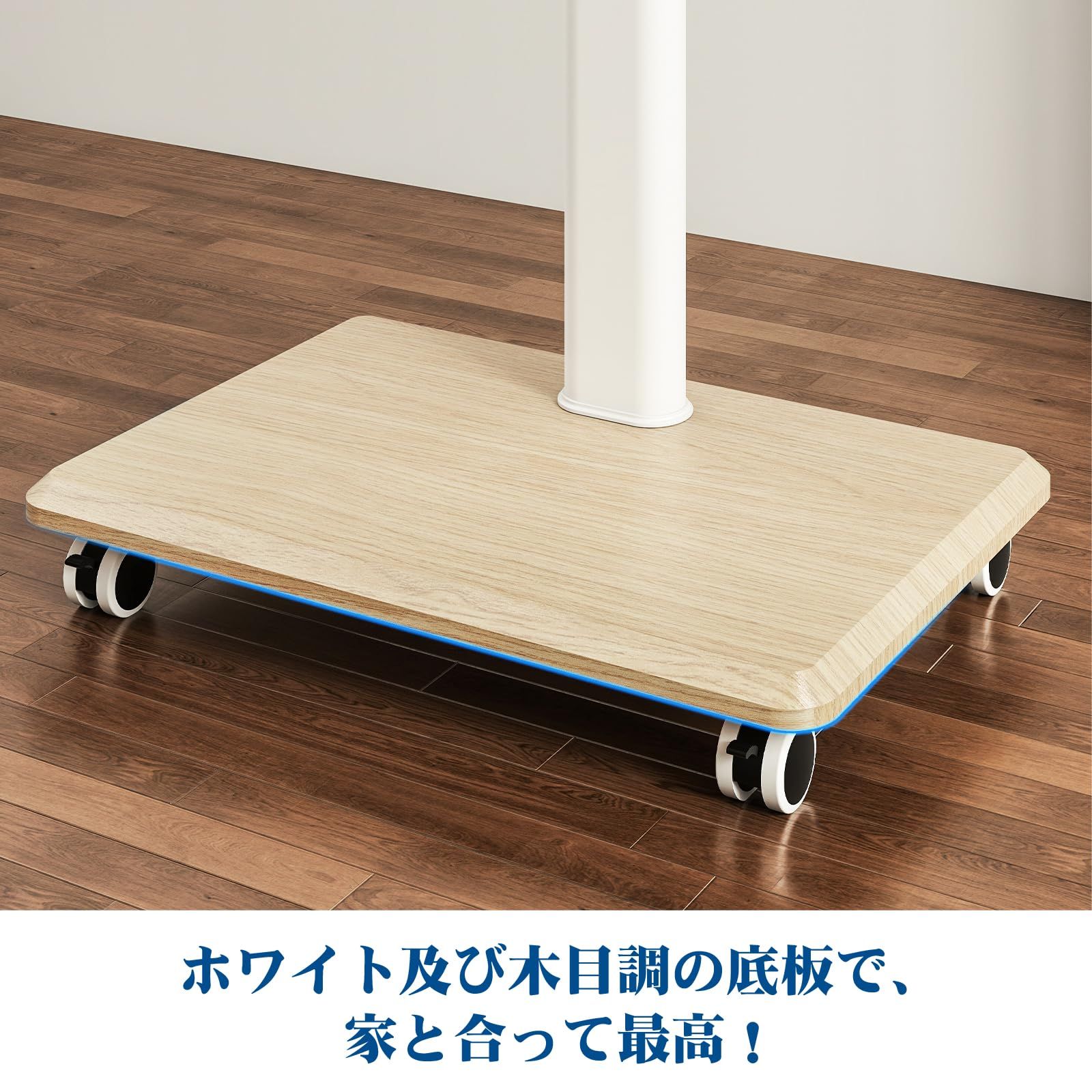 木製底板、便利な移動: 木目調な台座設計で、家とぴったりして、壁寄せテレビスタンドは4つのキャスターを持ち、360°移動で静音性がたかく、一人でも簡単にコース転換ができます。同時に、前の2つのキャスターは安全ロックを持っていて、テレビのフレームを固定しやすく、安定させています。