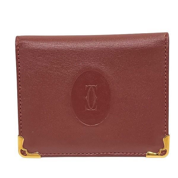カルティエ マストライン ボルドー レザー コンパクトミラー ブランド小物 パスケース レディース
