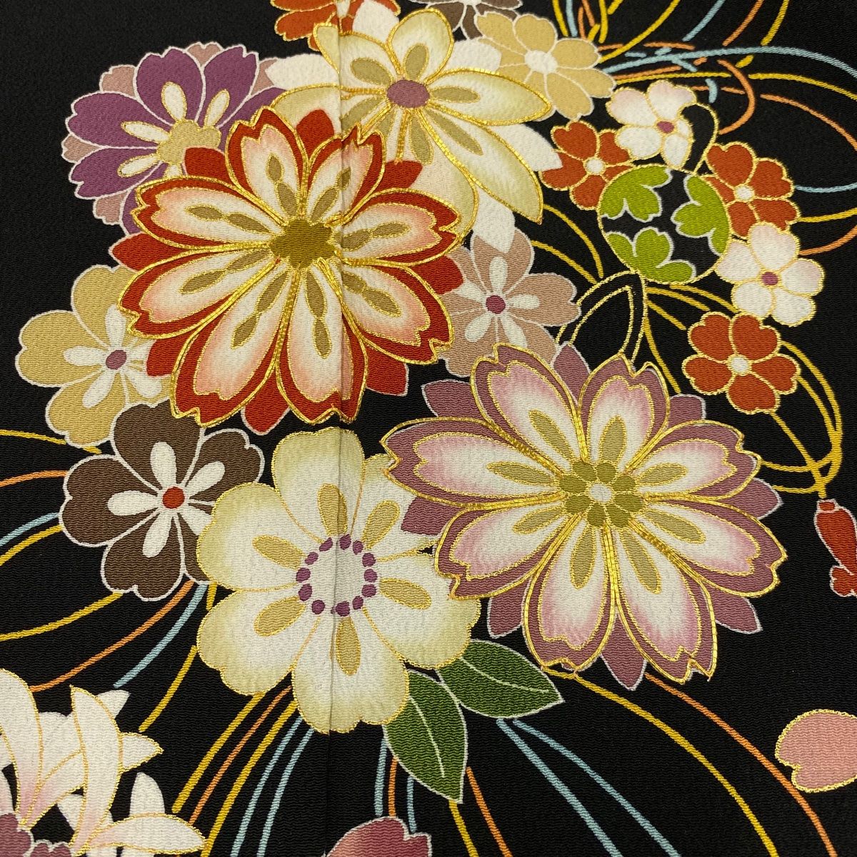 振袖 身丈162 cm 裄丈67.5 L 袷 薬玉 桜 金糸 金彩 黒 正絹