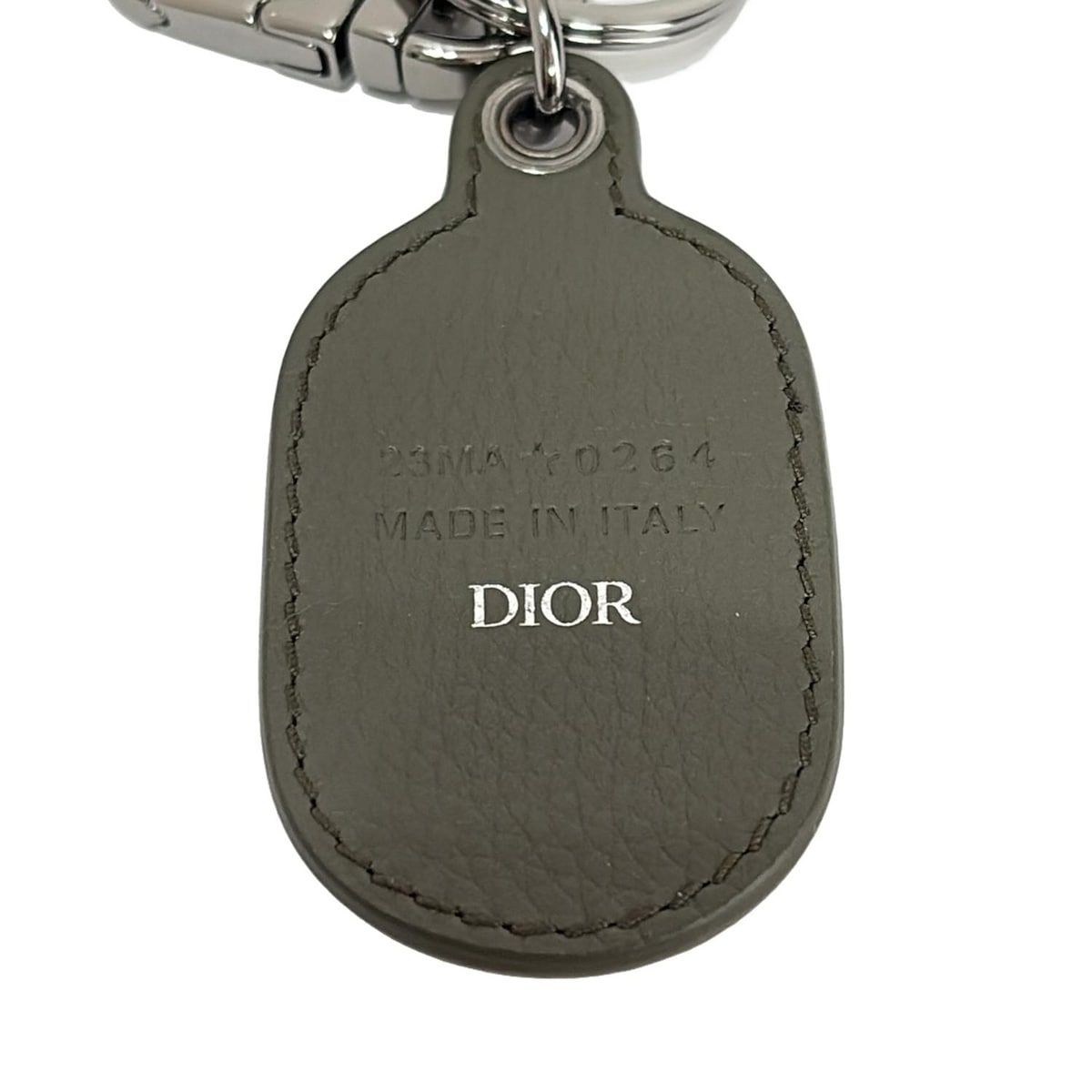 DIOR ChristianDior ディオール クリスチャンディオール キーホルダー チャーム D-Touch カーキ×シルバー キーリング付き レザー