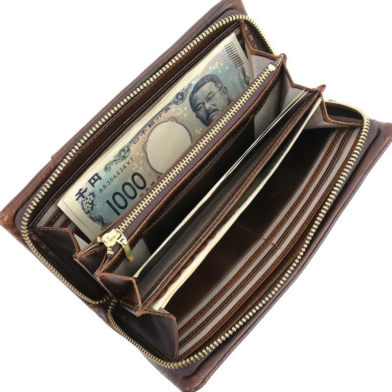 アレグロ ラウンドファスナー長財布 メンズ ブランド 本革 Allegro エスポワール 札入れ ロングウォレット 大容量 牛革 革 レザー バッファローレザー オイルレザー カジュアル オシャレ 紳士 軽量 さいふ サイフ 革小物 ウォレット