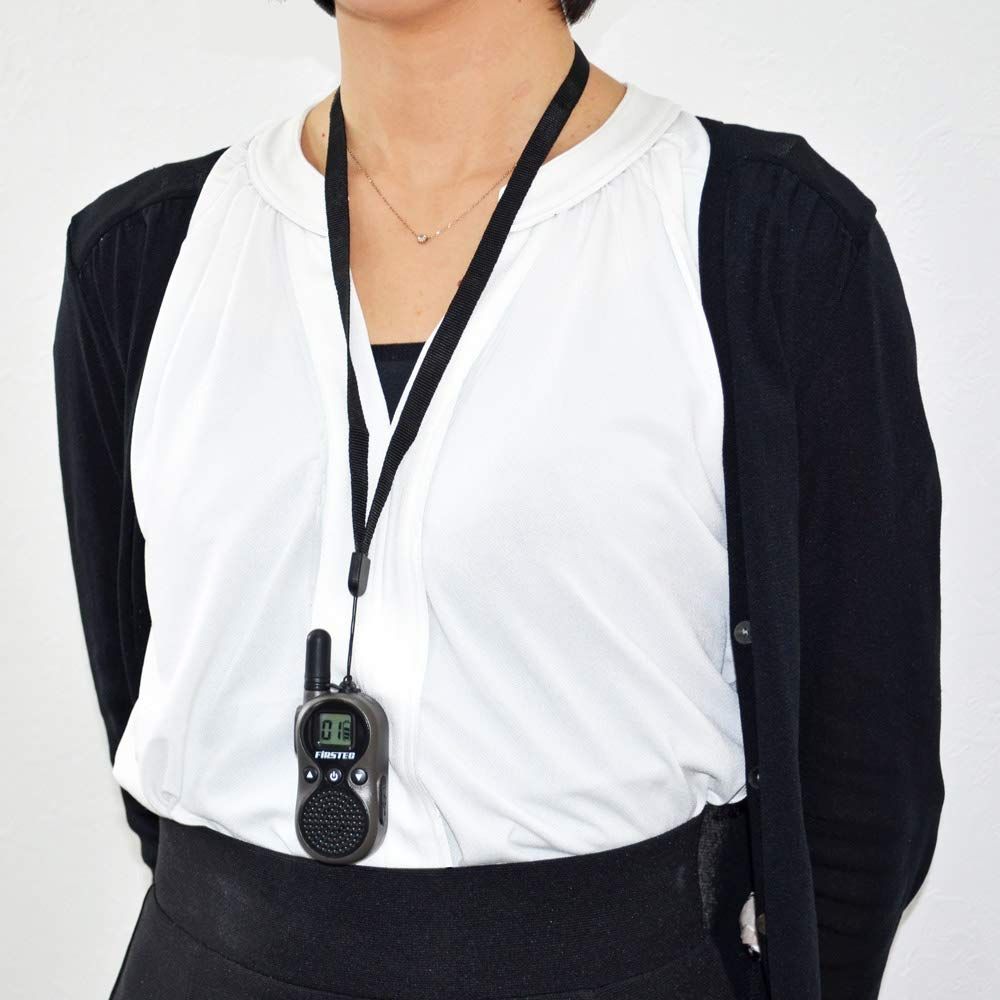 すぐに使える2台組。ネックストラップ、ベルトクリップ、充電用のアダプタとケーブルが2つずつ付属。