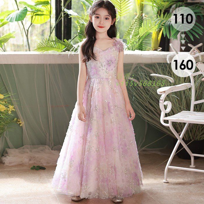 ドレス 発表会 結婚式 女の子 ピアノ発表会 110 フォーマル 150 160 舞台 120 イベント 子供 紫 130 ロング 袖無し 花柄 七五三 140 ノースリーブ vii 5 v 568165
