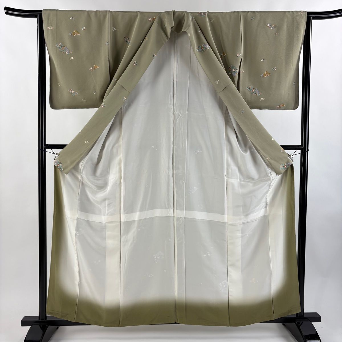 小紋 身丈158 cm 裄丈64 M 袷 反物 草花 金彩 灰緑 正絹 秀品