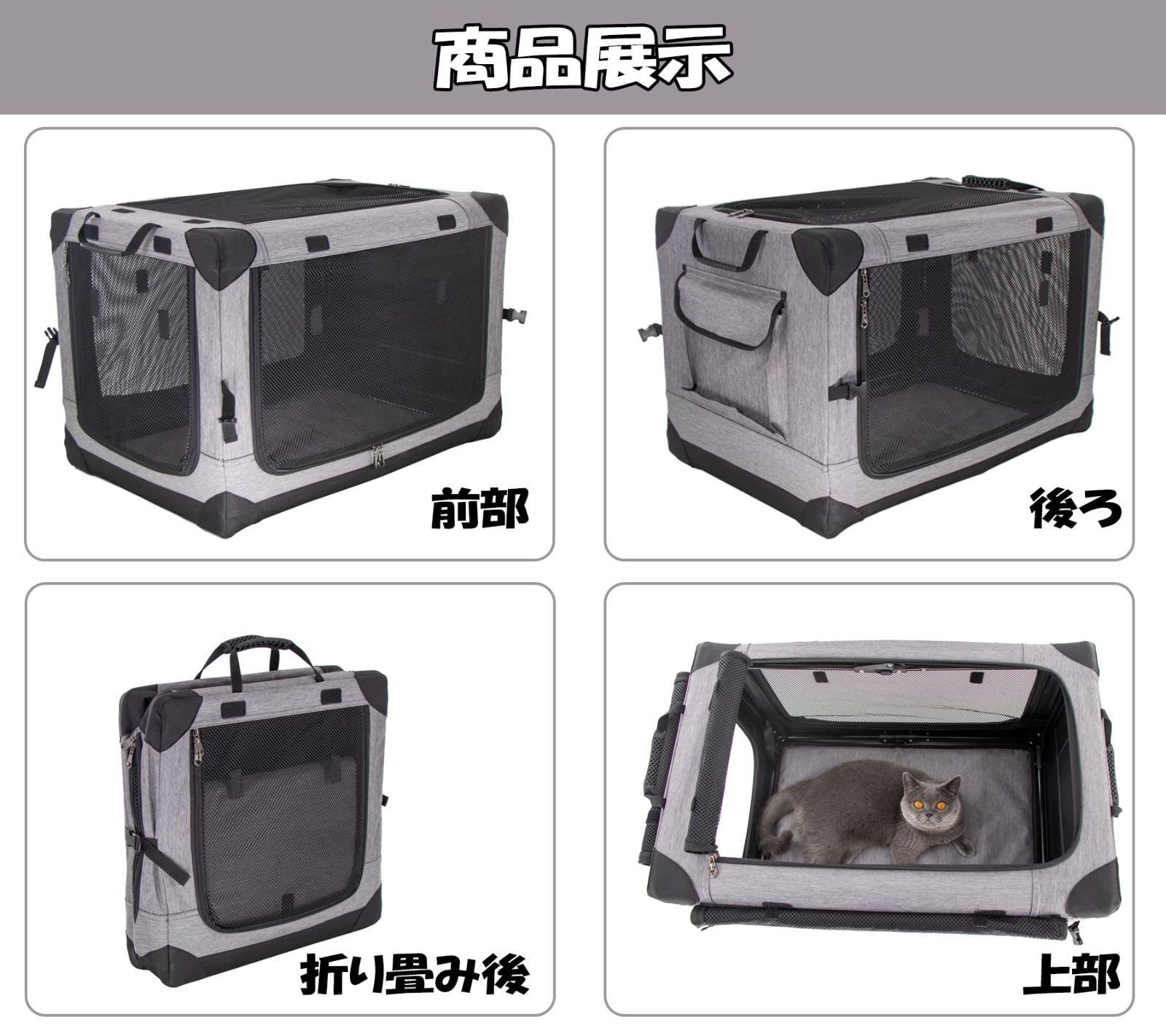 GPR ペット ソフトクレート ケージ ペットキャリー ペットハウス カバー取り外せる 4面メッシュ出入口 鉄フレーム 猫犬兼用 折りたたみ式 洗濯可能 (シルバグレー, XL)