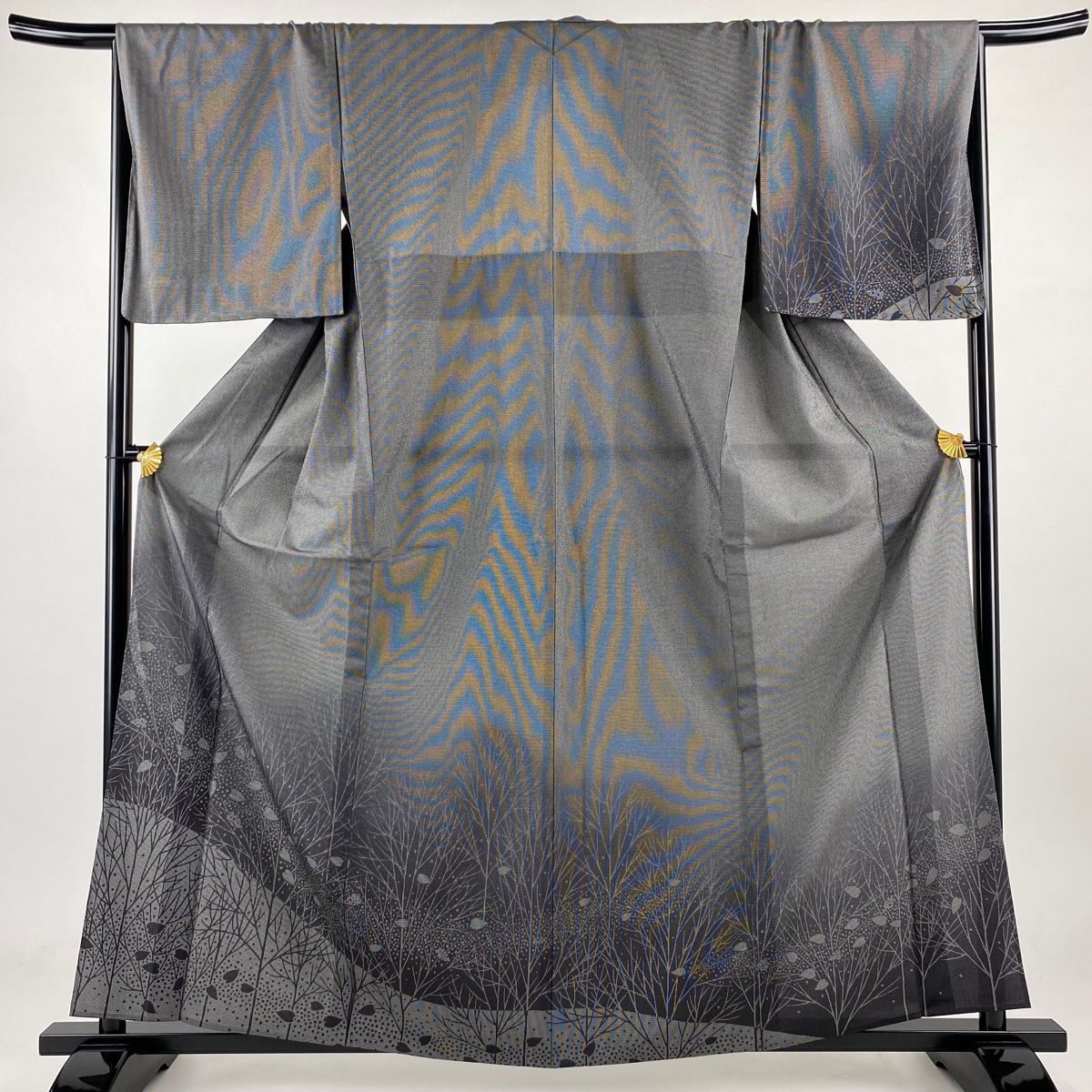 付下げ 身丈161 cm 裄丈68 L 単衣 樹木 ハート ぼかし 黒灰 正絹