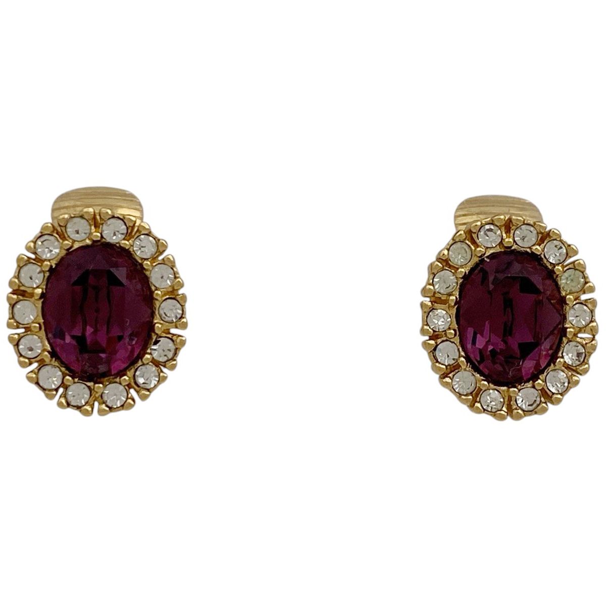 クリスチャンディオール Christian Dior ストーン イヤリング オーバル GP ラインストーン ゴールド パープル レディース