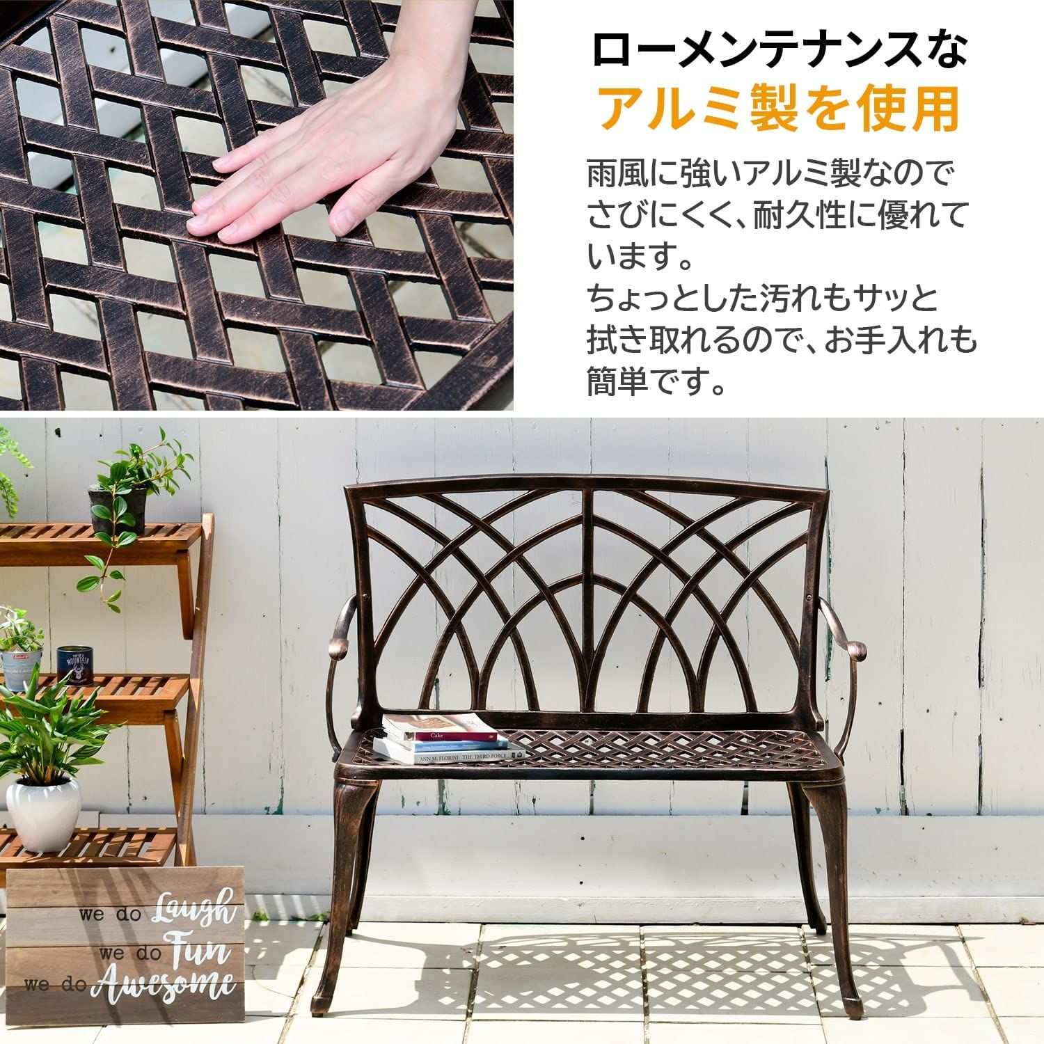 落ち着いたブラウン色のアンティーク調アルミガーデンベンチです