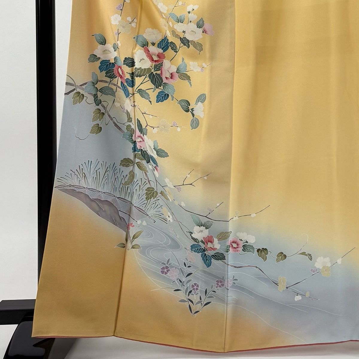 訪問着 身丈164.5 cm 裄丈68 L 袷 椿 枝梅 染め分け ぼかし 黄色 正絹 秀品