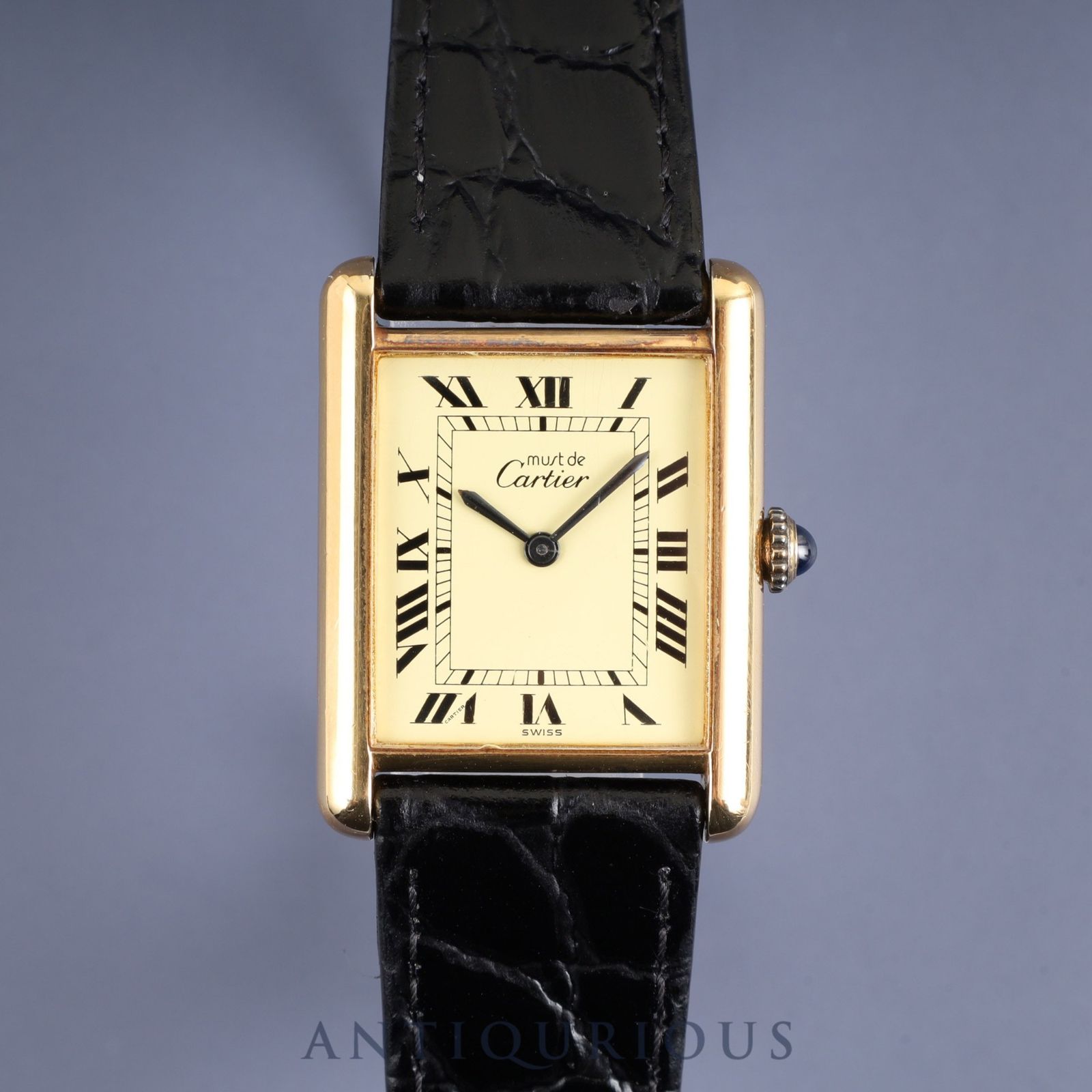 カルティエ マストタンク LM 手巻き Cal.- SV 925 革 尾錠 GP アイボリーローマン文字盤 1976年頃~1981年頃 オーバーホール済み