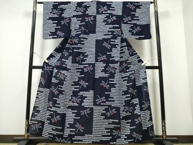 平和屋着物∴夏物 浴衣 有松鳴海絞り 蜻蛉 トンボ 横段文 綿 ng