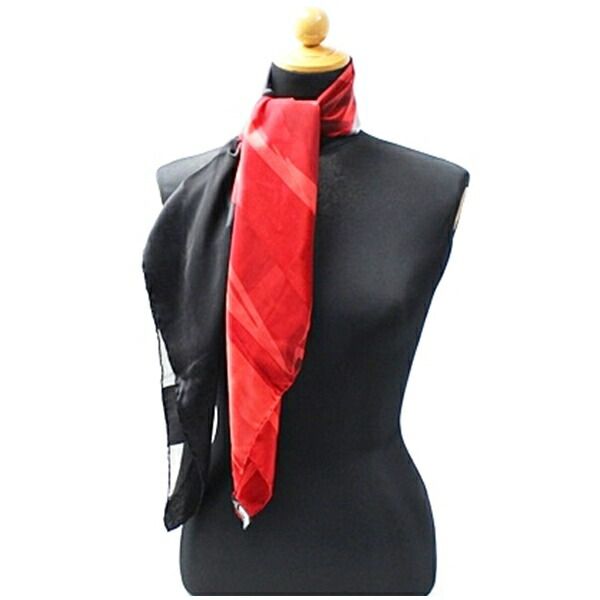 ヴァレンチノ シルク スカーフ レッド ブラック Aランク