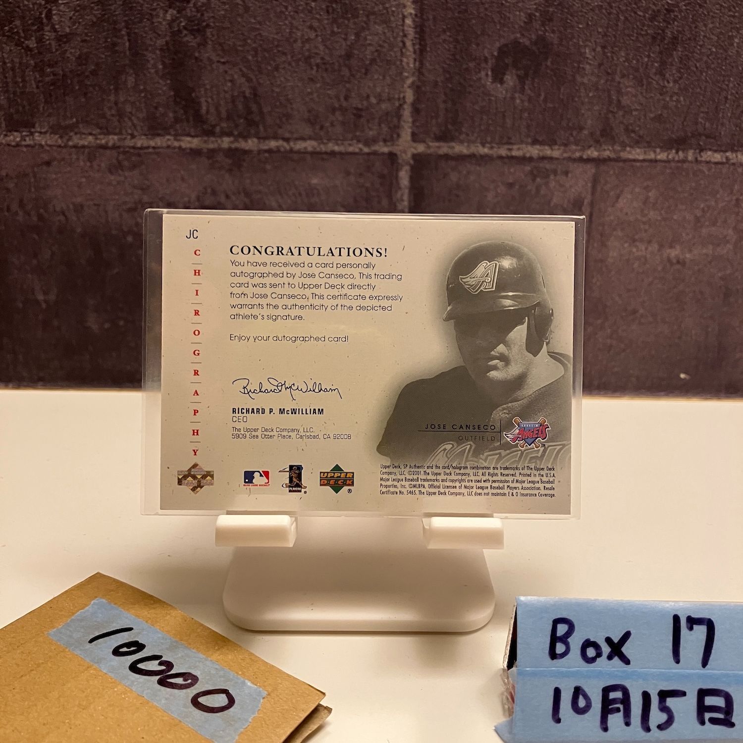 2001 Upper Deck SP Jose Canseco 直筆サインカード Anaheim Angels Chirography カード