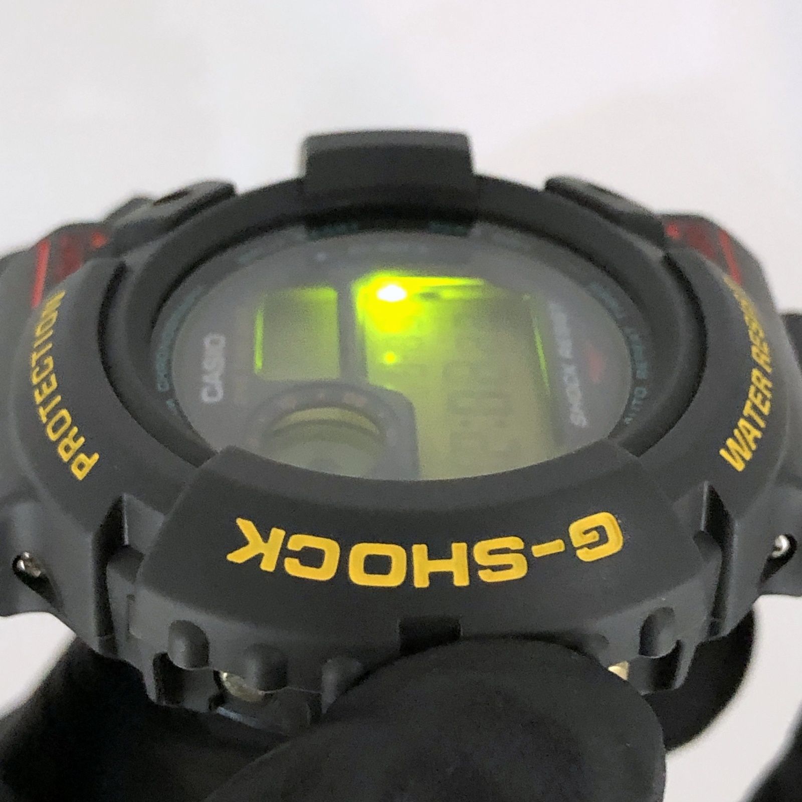 裏蓋保護フィルム付。ガラス内部に若干のくもりがあり、ベルトやベゼルにも目立たない薄い小傷が見られますが、使用感の無い綺麗な商品です。現時点で加水分解の兆候(ベタつきや硬化)は見られませんが、強い衝撃や保管状況等により加水分解が起こる可能性が充分にございます。あらかじめご了承の上ご検討ください。あくまでコレクション・観賞用としてご購入ください。※ヴィンテージG-SHOCKにご理解のある方のみご検討ください。購入後に強く曲げたりなどで劣化・破損した場合でも保障はいたしかねます。付属品:箱・ケース・製品タグ・巻きタグ・取扱説明書