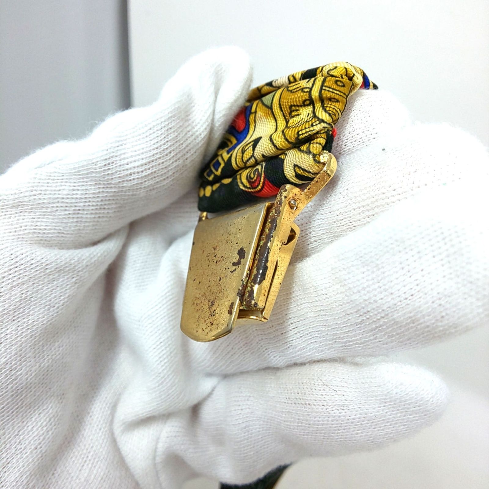 974 C-04 HERMES エルメス シルク サスペンダー レザー 総柄 ブラック系 ゴールド金具 ブランド 服飾雑貨