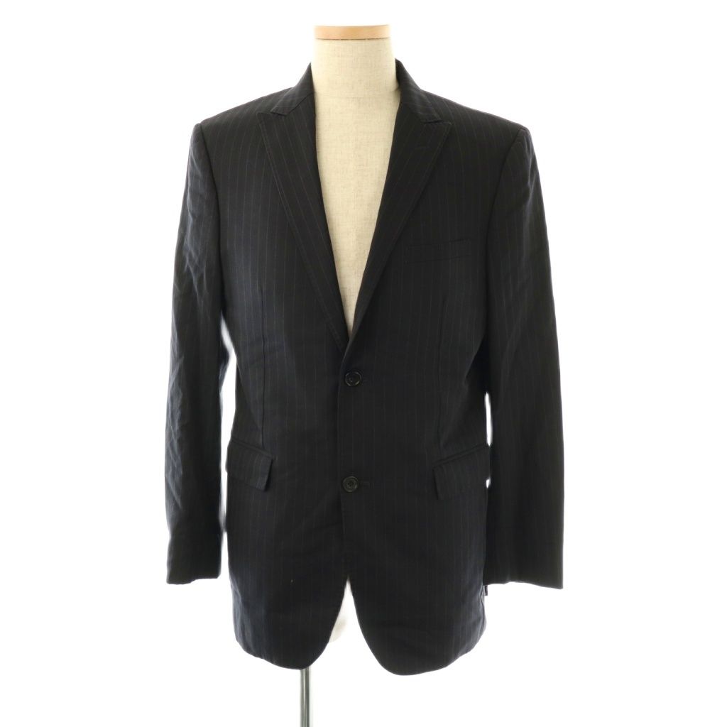 バーバリーブラックレーベル BLACK LABEL Super 110’s WOOL セットアップ スーツ テーラードジャケット パンツ ストライプ 42 ネイビー HK OS