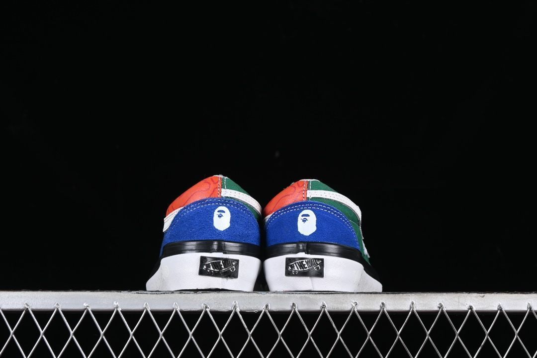 この Bape と Vans のコラボレーションモデル Old Skool は、定番の猿人頭ロゴが特徴的なレトロなデザインで、大人気の低背レジャー スケートボード シューズです。1:1 のヴァン化工法により、重量感やロゴ、刻印、マテリアル表示、シューズ型番、合格証など、細部までこだわった仕上がりです。