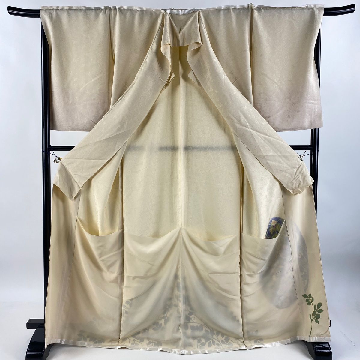 付下げ 身丈170.5 cm 裄丈69.5 未仕立て 仮絵羽 草花 地紋 金彩 ベージュ 正絹 秀品
