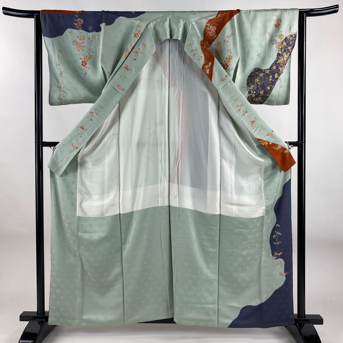 訪問着 身丈161 cm 裄丈64 M 袷 秋草 疋田 金彩 絞り 薄緑 正絹 秀品