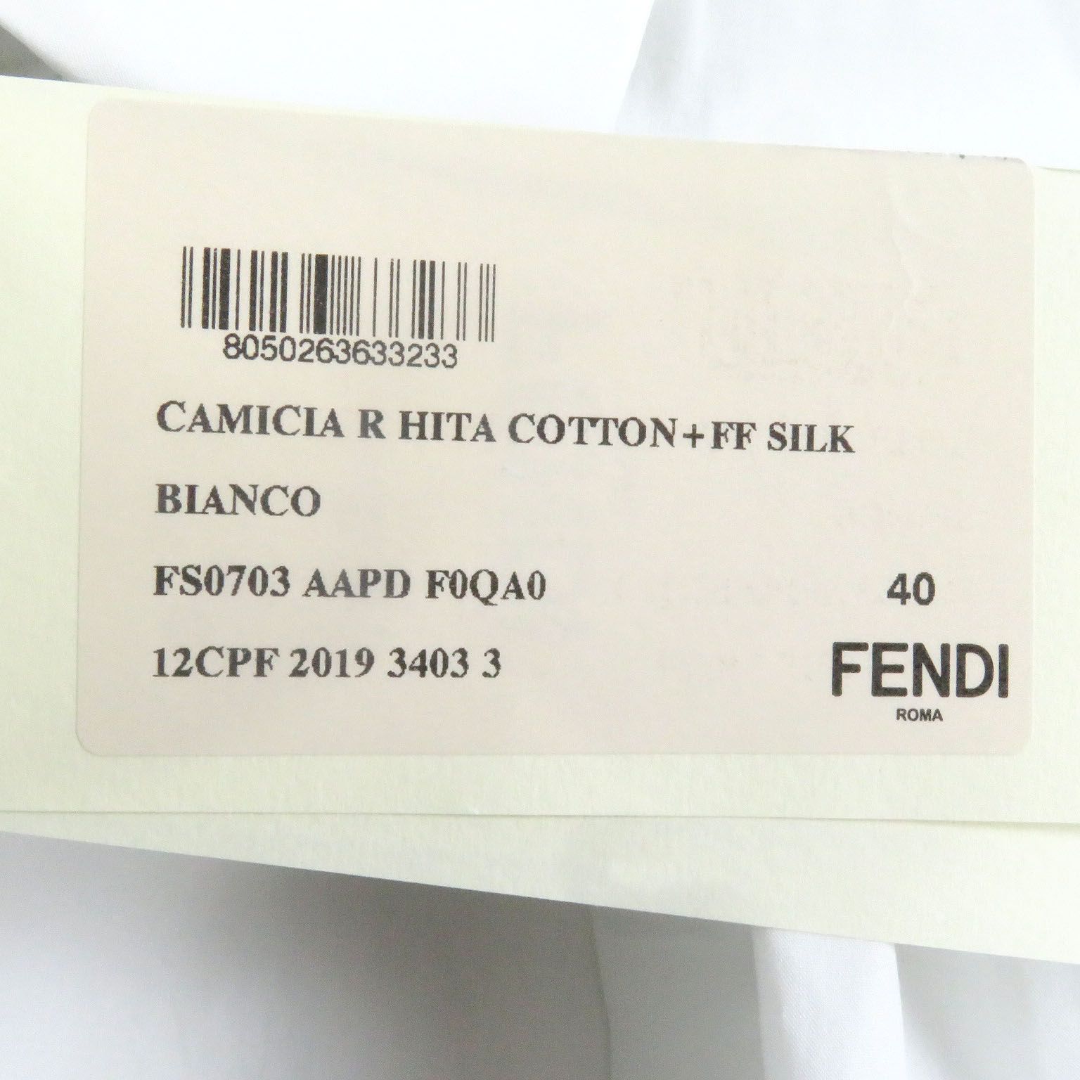 FENDI フェンディ FS 0703 コットン100% 襟元FFロゴ ロングスリーブ 長袖 カッターシャツ ホワイト 40 イタリア製 メンズ