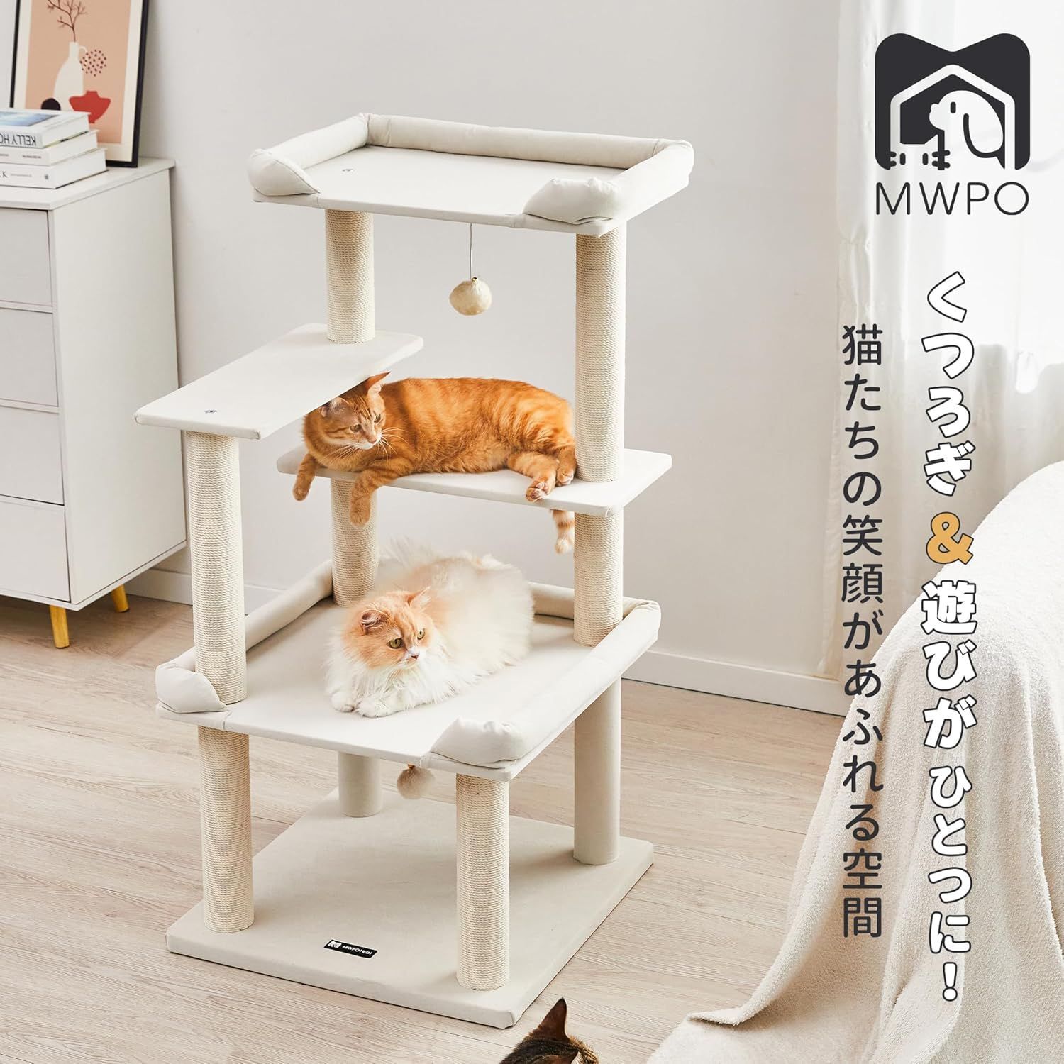 MWPO 猫タワー 新素材 大型猫 シニア猫 据え置き 安定感 多頭飼い 爪とぎ 猫ベッド シンプル 114 cm ベージュ 954 F