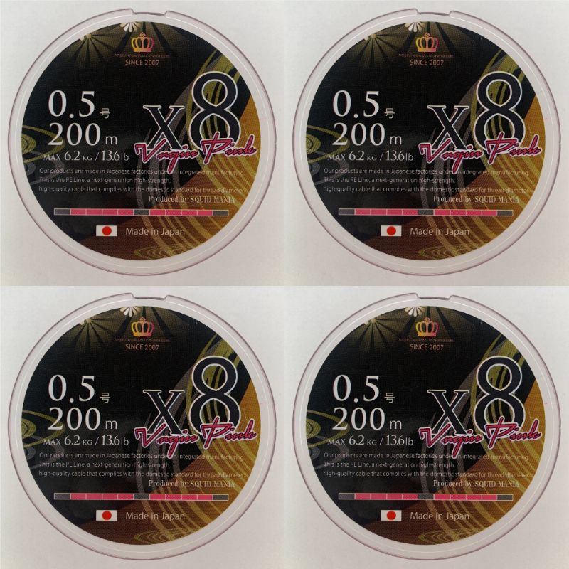 0 5号200 m 4本セット X 8 PE 鱗丸オリジナル VirginPink ピンク4 スモークシールド1 m&100mマーカー スクイッドマニア