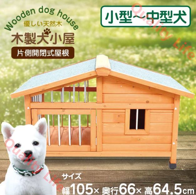 片側開閉式屋根付き 木製ドッグハウス|お手入れ簡単&通気性 天然木使用 片側開閉式屋根の犬小屋|快適な愛犬のプライベート空間
