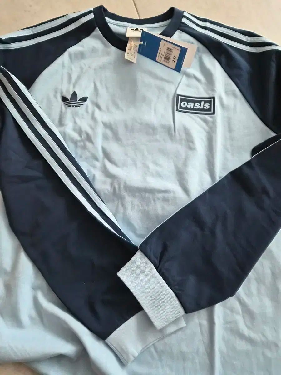 adidas オアジス コラボ ロングスリーブ Tシャツです。スカイブルーのバターンにネイビー色で POINT 줘서 예뻐요。サイズは XXL で、ゆったりしている 분들께 オススメ 出品します。コメント 없으시면 馬狼 照英 安全決済해주시면 됩니다!