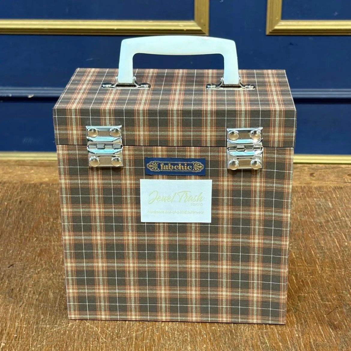 jewel trash×fab chic EP 7インチ レコードケース ブラウンチェック ハンドルホワイト 収納ボックス キャリーバッグ モッズ 昭和 レトロ DJ 60年代 70年代