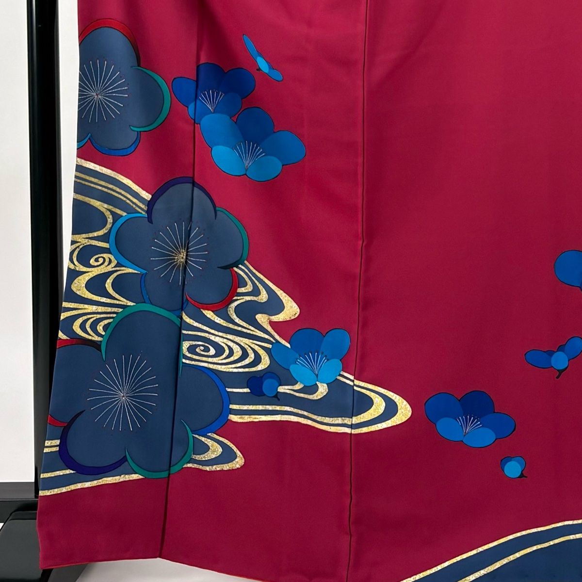振袖 身丈166.5 cm 裄丈66.5 M 袷 流水 梅 金銀彩 赤紫 正絹 秀品