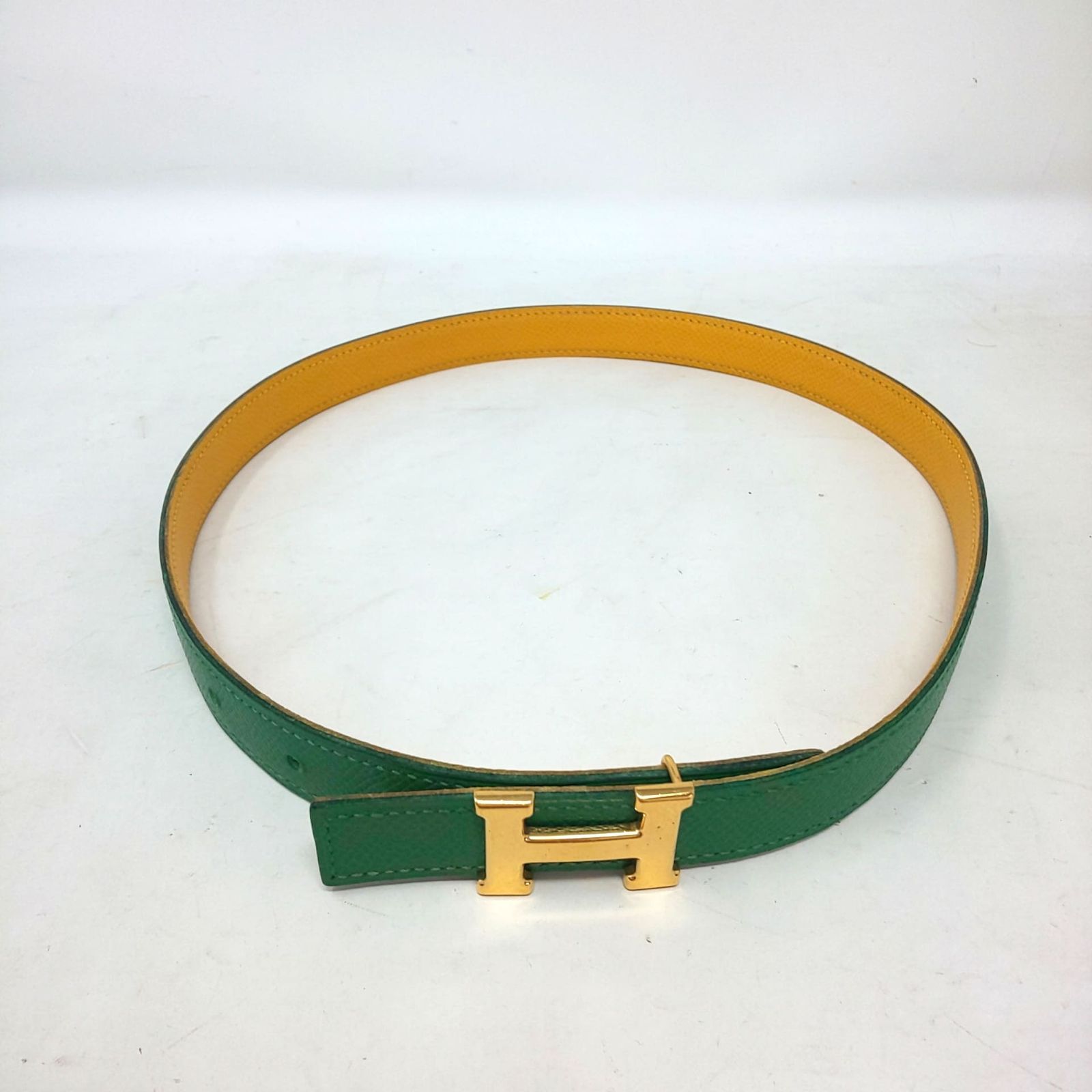 1189 A-05 HERMES エルメス コンスタンス Hバックル レザー ベルト リバーシブル レディース イエロー グリーン